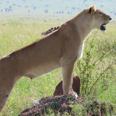 dazu, um Raubkatzen zu sehen und vor allem um Löwen in einem Baum zu erspähen.