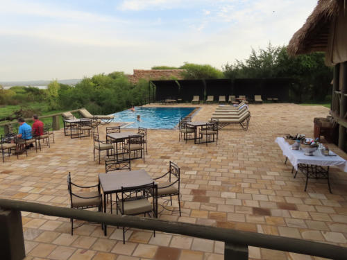 Hier am Ufer des Sees Burunge beobachteten wir von der Terrasse des Hotelrestaurants aus, wie die Tiere aus der