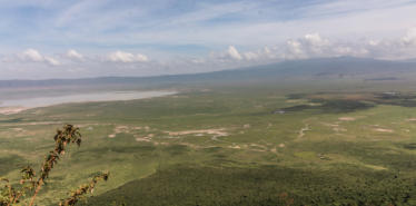 Seite der Lodge erheben sich die grünen Ngorongoro Highlands, die dort das Tor zum Ngorongoro-Krater bilden.