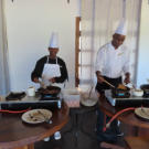 Terrasse, von der aus wir den wunderschönen afrikanischen Sonnenuntergang sehen konnten.