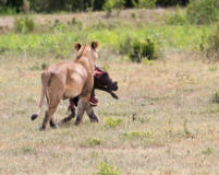 Büffel, Impalas, Gazellen und verschiedene Antilopenarten an. Diesen Grasfressern folgen natürlich auch die