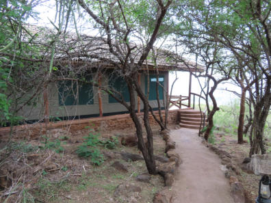 Tented Lodge außerhalb des Parks, wo wir unser Quartier bezogen.